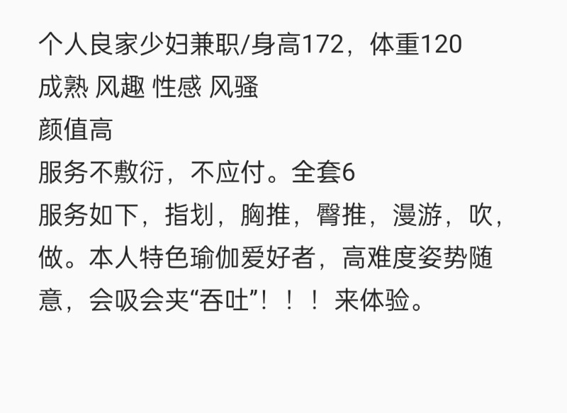很久没有找仙仙老师了,这次提前和老师提前联系好,因为很久没有做了,所以我选择的570包时,老师先是跟给我洗鸡鸡,洗完之后就开始给我进行服务,老师先是给我做冰火漫游这些,用冷水先给我口,然后又用热水给我口,冰火交替,由于很久没有做了,所以就很快就射了出来,休息了一会,仙仙给我拿水喝,然后就给我继续做后面的服务,用胸推我的前背和后背,很舒服,然后就给我做毒龙,就给我擦干净开始舔,这些一系列服务做完后,然后就继续给我口。口了一会,就硬了开始给我带套套,老师还穿上我最喜欢的紫色情趣衣服,然后进开始进入洞洞,插进去,仙仙老师就开始用力夹我,让我使劲的艹她,我继续用力艹,第二次不好射,老师一直说骚话,然后我就使劲的艹,做了很久,终于射出来了,反正这个包时不限次数,我觉得性价比可以是拉满,做了二次很过瘾,下次还会继续反食。